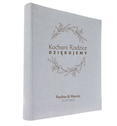 Album tradycyjny 60 czarnych stron Linen Ash szary, personalizacja Podziękowania